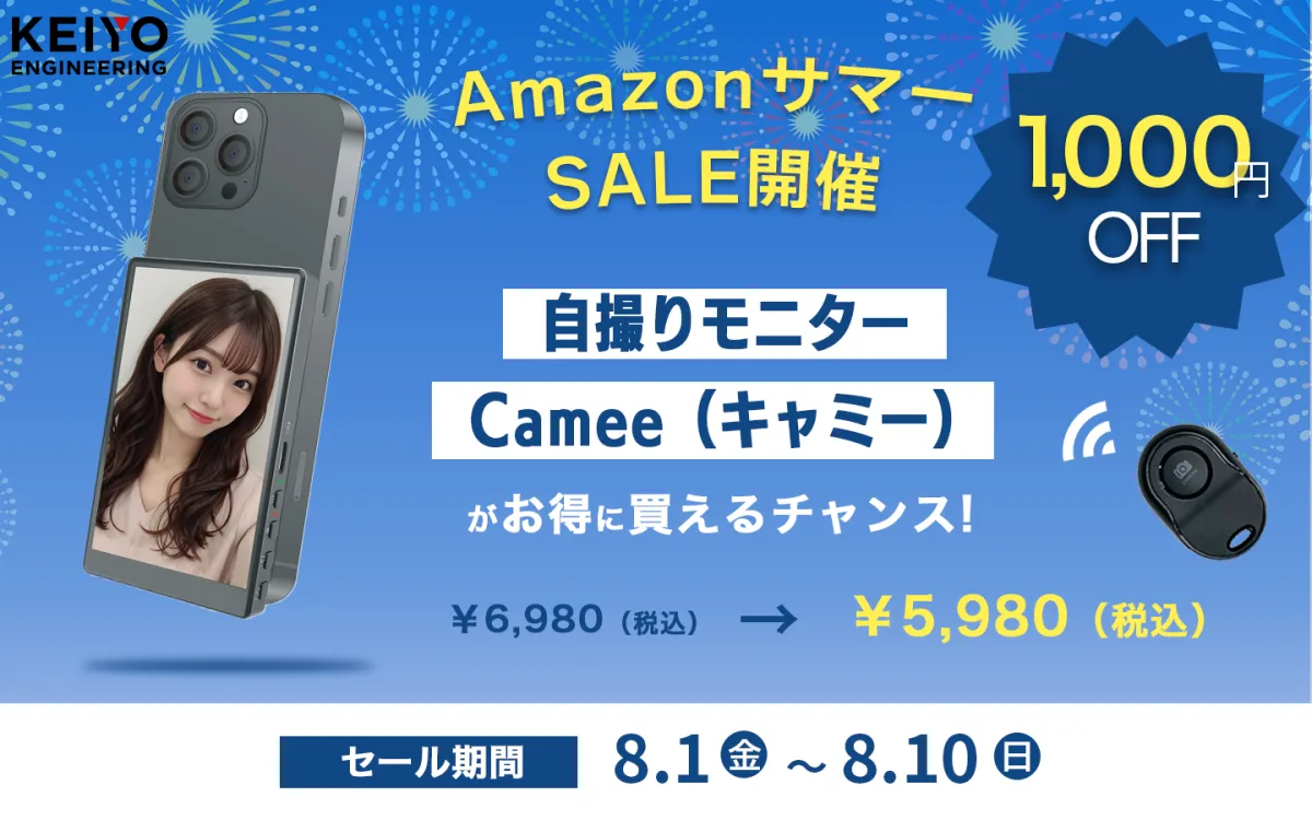 現在、KEIYOでは「サマーSALE」を開催中。自撮りモニターCamee(AN-S151E)はもちろん、その他のカー用品などもお得に手に入ります。特に注目は、iPhone専用の外カメラモニターで、軽量かつ便利な機能満載です。この機会をお見逃しなく!