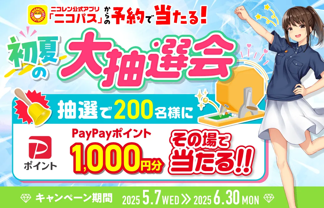 株式会社レンタスが運営するニコニコレンタカーは、2025年5月7日からの約2ヶ月間、エキサイティングな「初夏の大抽選会キャンペーン」をスタートしました。このキャンペーンは、公式アプリ「ニコパス」を通じてレンタカーの予約をしたすべてのお客様が対象となります。抽選で200名の方に、なんと1,000円分のPayPayポイントをその場でプレゼント! これは嬉しいサプライズです。