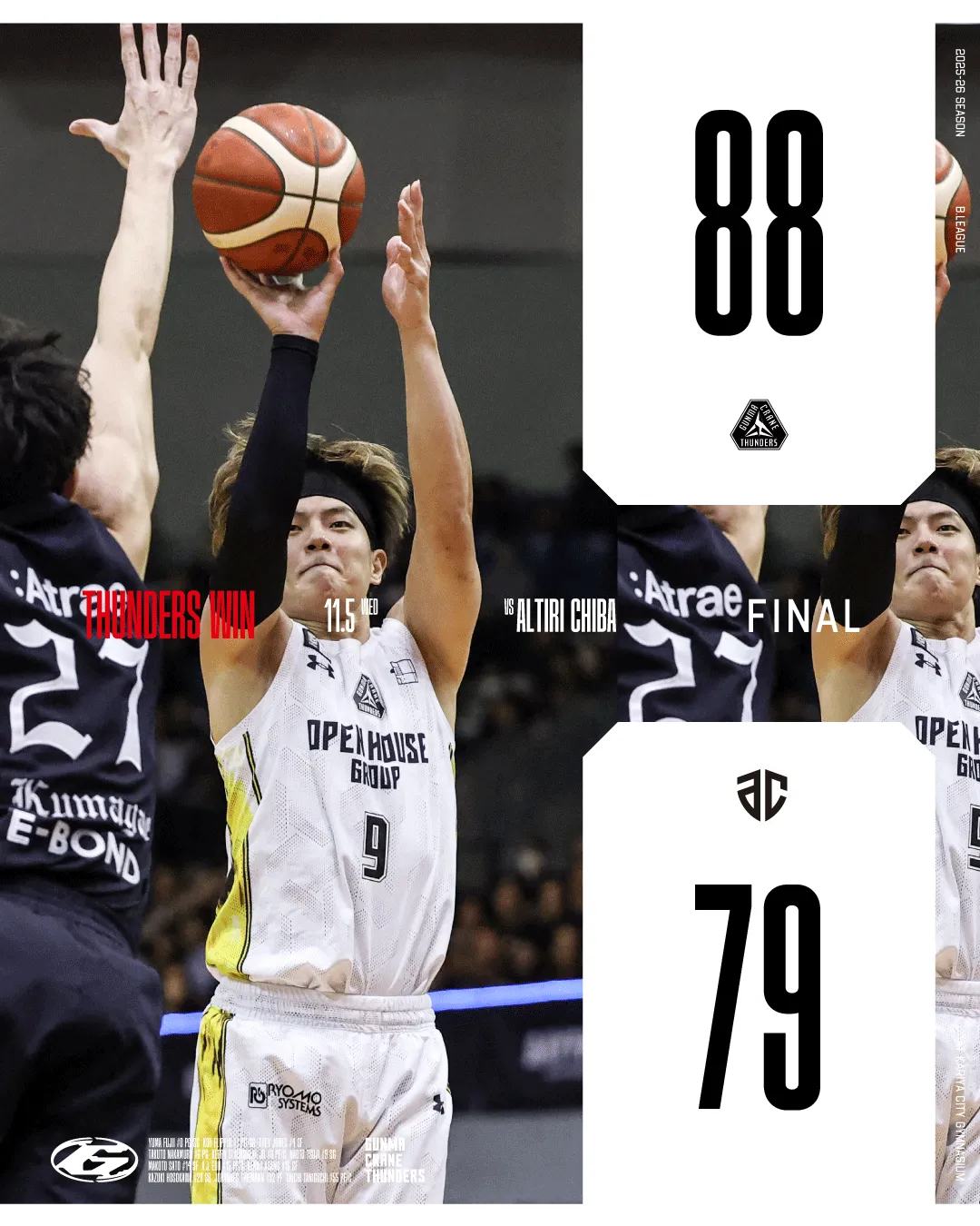 2025-26シーズンのB.LEAGUEにおいて、群馬クレインサンダーズがアルティーリ千葉と戦った試合は、ホームでの重要な一戦でした。この試合では、顕著なパフォーマンスを見せた選手たちと、ヘッドコーチのカイル・ミリングの采配が光りました。