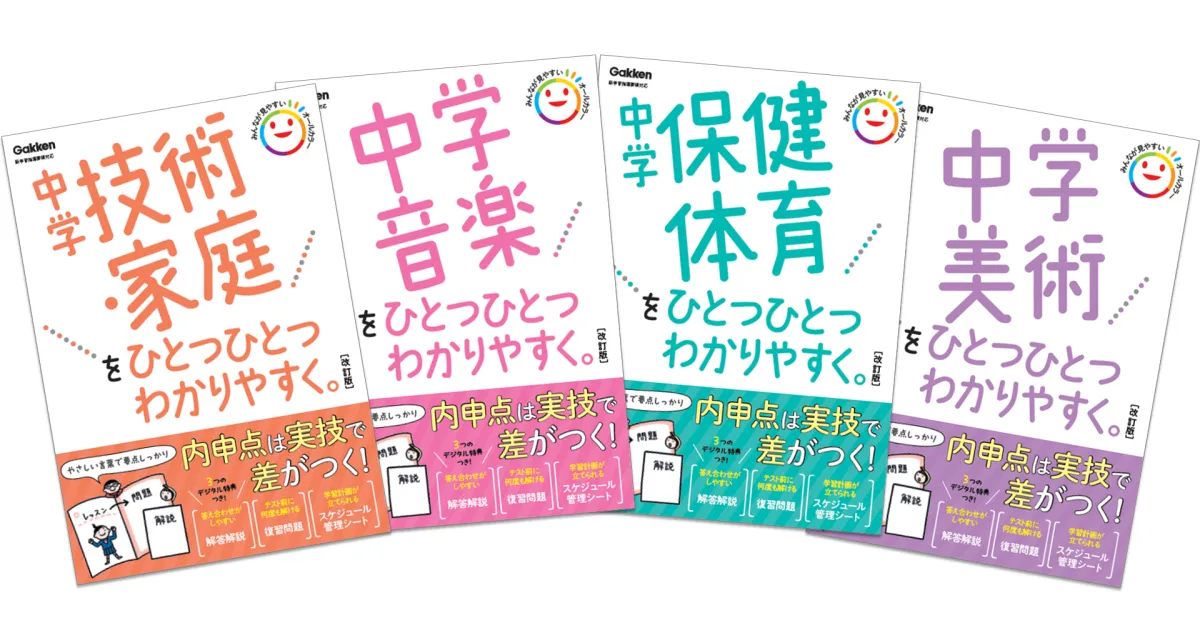 特に新しい1年生にとっては、「どこを覚えればいいのか」「どんな問題が出るのか」などの不安を軽減する内容になっているため、中学の3年間を通じて実技科目のテスト対策ができる心強い味方です。