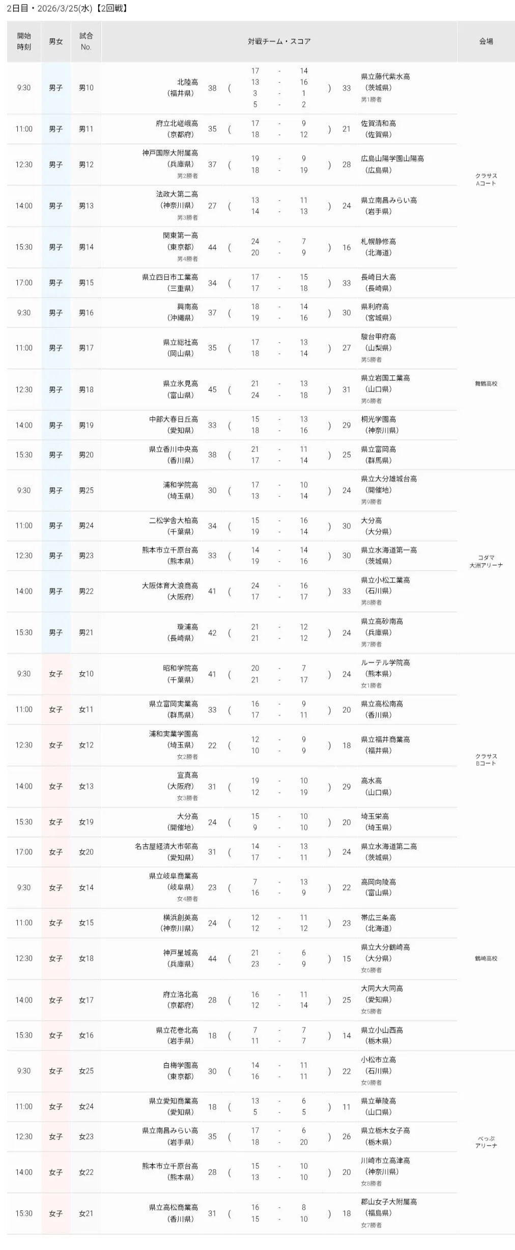 2026年3月25日、全国の高校生が集結する「第49回全国高等学校ハンドボール選抜大会」の2日目が開催されました。この日は男女合わせて16試合が行われ、競技も佳境を迎えました。各チームが全力を尽くす中、2回戦を経て男女のベスト16が確定。大会の行方に大きな影響を与える結果が続出しました。