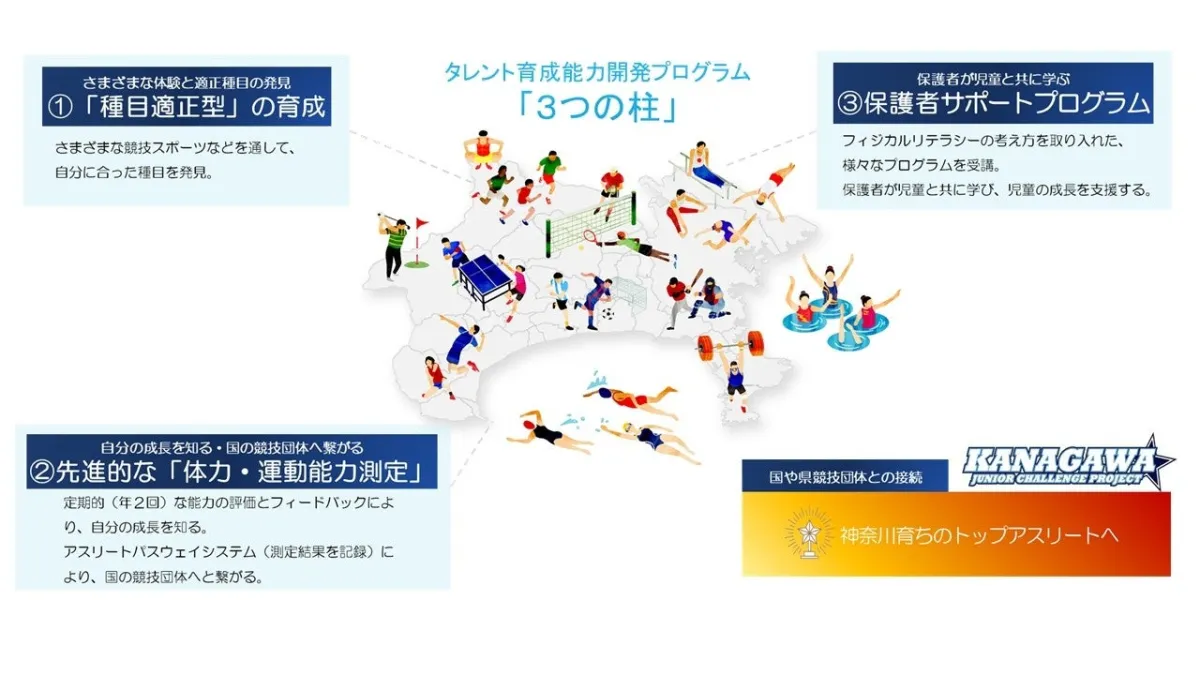 「かながわジュニアチャレンジプロジェクト」の一環として、将来のアスリートを育成するこのプログラムは、ますます重要な役割を果たしています。子どもたちは競技体験を通じて、新たなスポーツの可能性を体験し、自分の能力を伸ばしていくことが期待されています。プログラムでは、身体能力や知的能力の開発に力を入れ、多様な才能を持つ子供たちを1人ずつ丁寧に育てています。