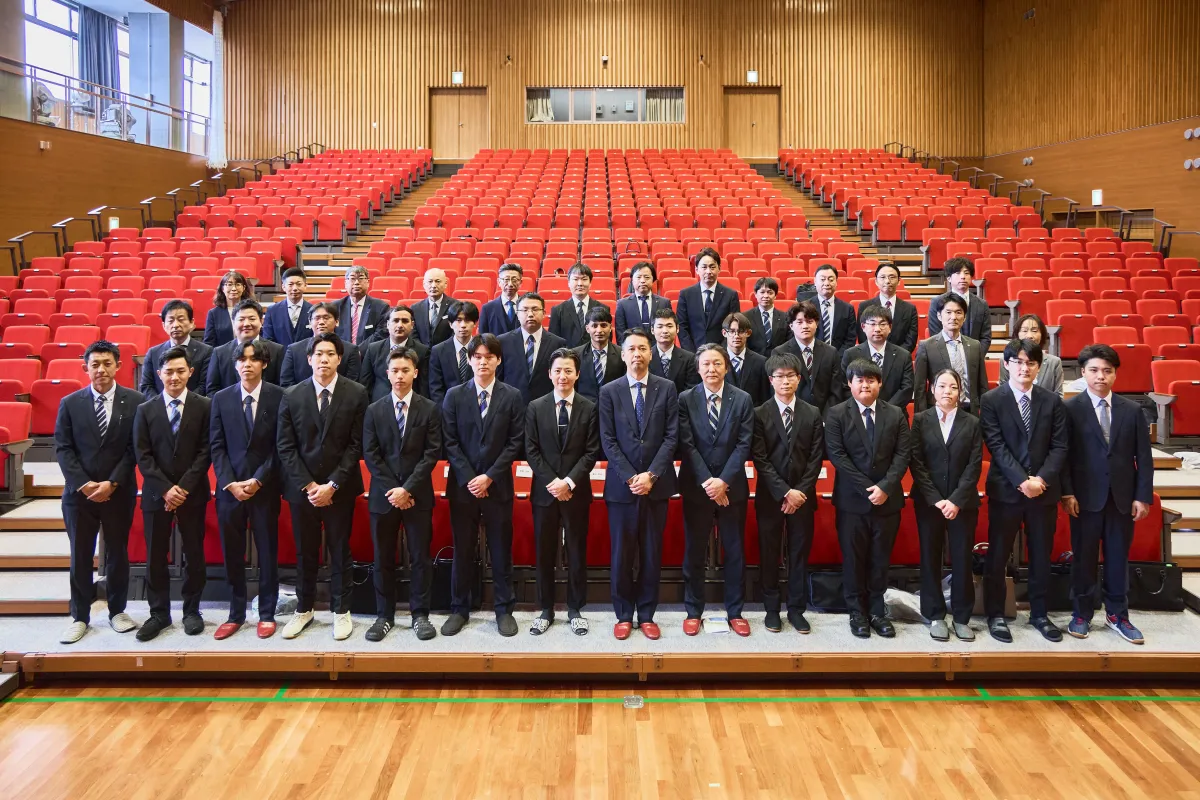 この日の式には、福島日産から17名、日産部品福島販売から1名、そして株式会社ナプロアースから1名、計19名の新入社員が参加しました。各自は今日から新たな一歩を踏み出す意気込みを持って、KANEYOグループの仲間として迎え入れられました。