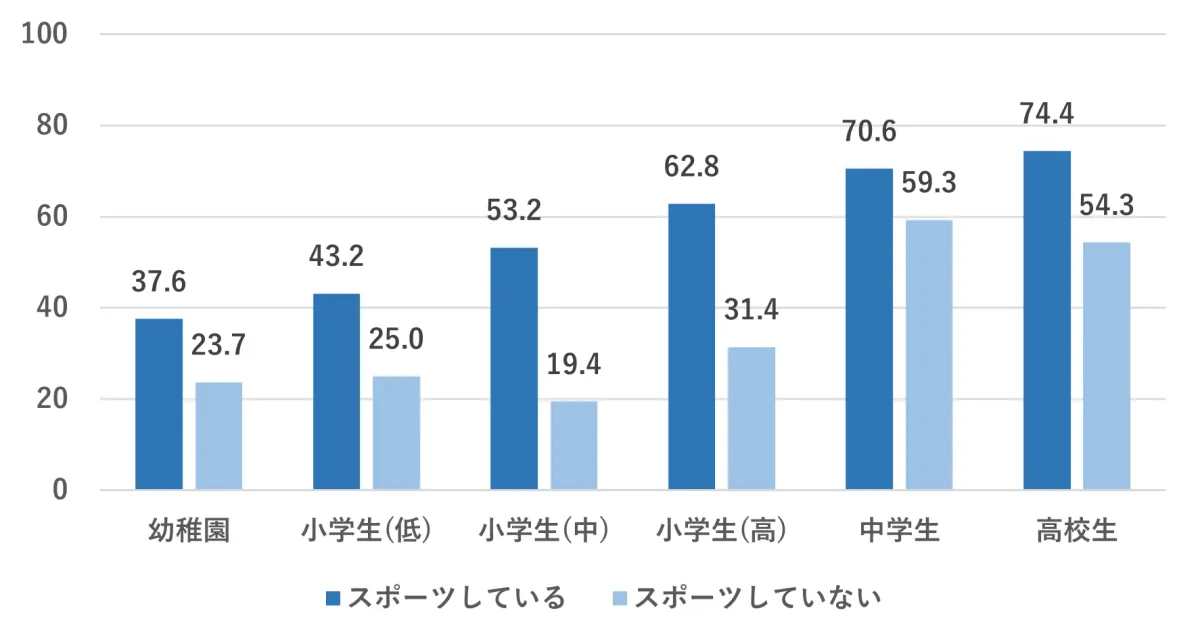 調査結果によると、特にスポーツを行う中高生の疲労感は顕著で、運動をすることで逆に疲労度が増すというジレンマが浮き彫りとなりました。スポーツを行っている高校生の74.4%が疲労を感じている一方で、運動を行っていない生徒は54.3%の疲労感を示しています。これは、運動習慣が身体に与える影響だけでなく、それによるストレスや学業との両立が影響していると考えられます。
