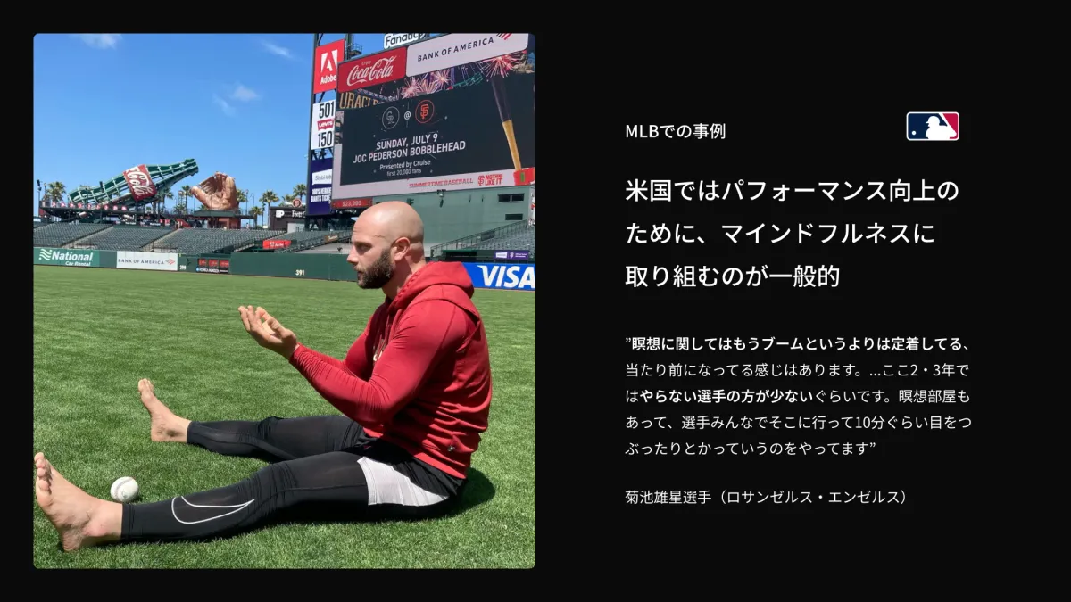 また、Upmindは東京大学との共同研究を通じて、継続的なマインドフルネスの実践が客観的に睡眠の質を改善できるというデータを持っています。これが選手たちの競技生活にどのような影響を及ぼすのか、その効果に期待が寄せられます。