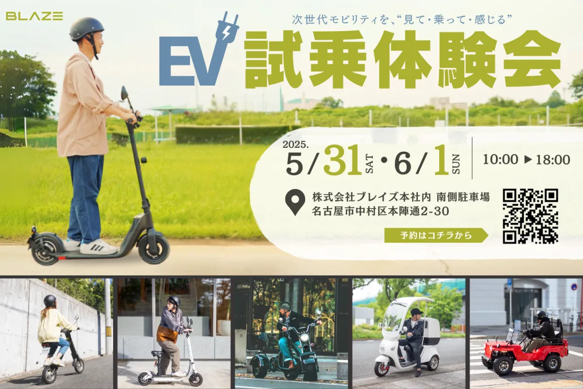 行動範囲を広げる新たな移動手段、電動モビリティ。株式会社ブレイズが主催する試乗体験会は、その魅力を直接感じられる絶好のチャンスです。5月31日(土)と6月1日(日)の2日間、名古屋市中村区にあるブレイズ本社で、様々な電動モビリティをお試しいただけるイベントが開催されます。