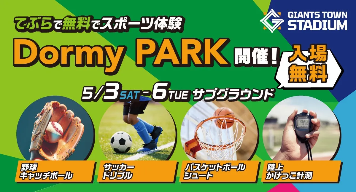 東京都稲城市に位置するジャイアンツタウンスタジアム(通称Gタウン)にて、2023年5月3日から6日までの間、特別なイベント「Dormy PARK」が実施されます。このイベントは、全国に展開する寮事業およびホテル事業を手掛ける共立メンテナンスの支援の下、子どもたちが楽しく体を動かせるスポーツ体験の場として提供されるものです。