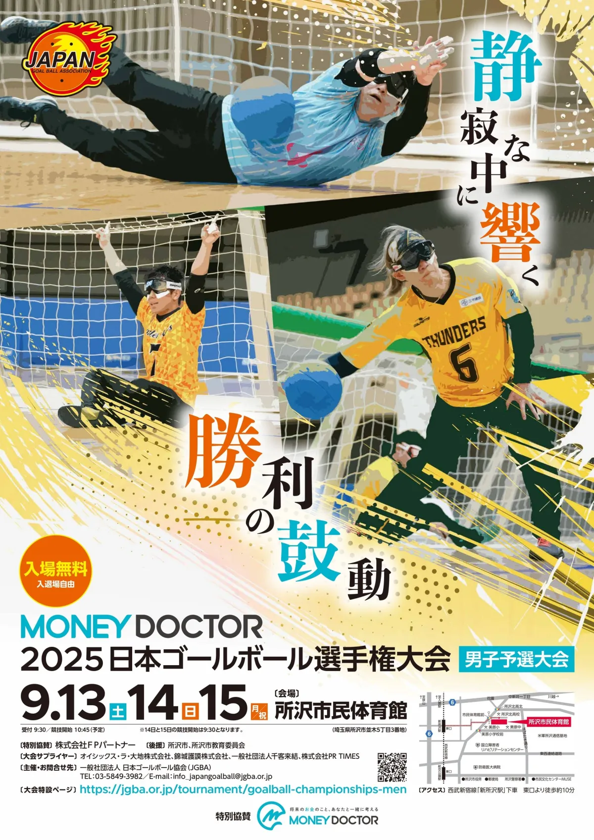 2025年9月13日から15日にかけて、埼玉県所沢市に位置する所沢市民体育館で、注目の「MONEY DOCTOR 2025 日本ゴールボール選手権大会 男子予選大会」が開催されます。この大会は、国内のクラブチームによるゴールボールの日本一を決める大会進出枠を争うもので、今年は16チームがエントリー予定です。出場権を得るためには、厳しいコンペティションでの上位6位以内に入賞することが求められ、選手たちの熱い戦いが予想されています。