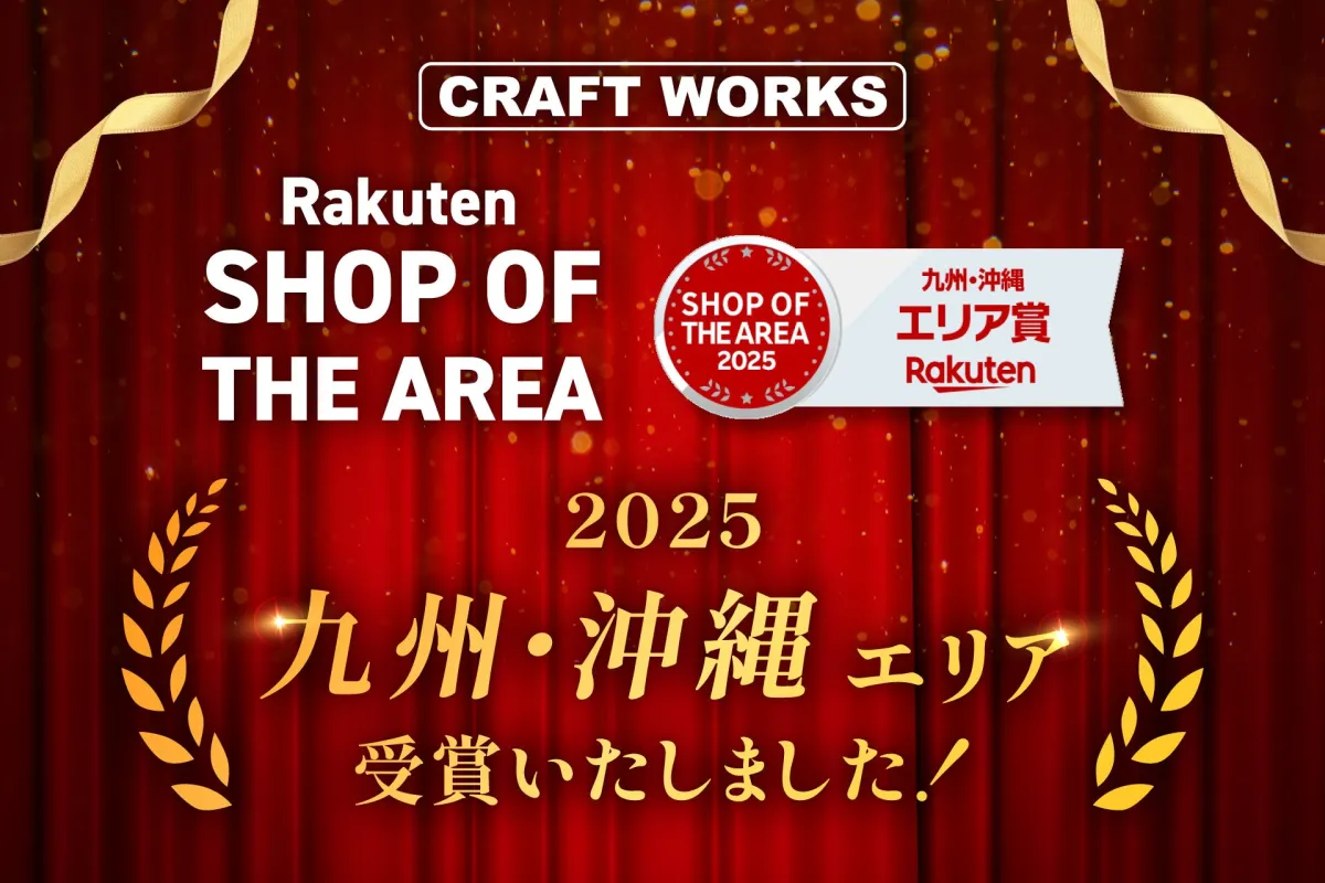 「クラフトワークス」が、この度「楽天ショップ・オブ・ジ・エリア2025」において、九州・沖縄エリア賞を受賞しました。楽天市場の中で特に際立った活躍をし、多くのお客様から支持を得たショップに贈られるこの栄誉に、クラフトワークスは感謝の気持ちを伝えています。