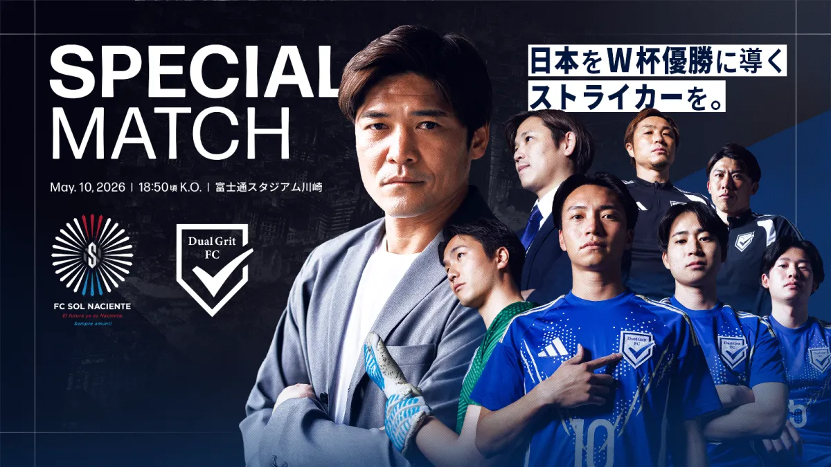 2026年5月10日に、Dual Grit FCが元サッカー日本代表の大久保嘉人氏が率いるFC Sol Nacienteとの特別マッチを行うことが発表されました。この試合は、「競技かキャリアか」という従来の常識を覆す新たな挑戦を掲げるDual Grit FCと、次世代ストライカーの育成を目指すFC Sol Nacienteという、異なるビジョンを持つ両クラブが一堂に会するものです。