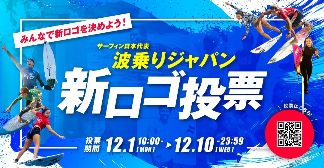 波乗りジャパンの新ロゴにぜひご注目ください。これからの未来を担う若いアスリートの育成を進めるためにも、この取り組みは極めて重要です。参加を通じて、もっと多くの人にサーフィンを楽しんでもらいたいと願っています。サーフィンの魅力を広げるために、あなたの一票が必要です!