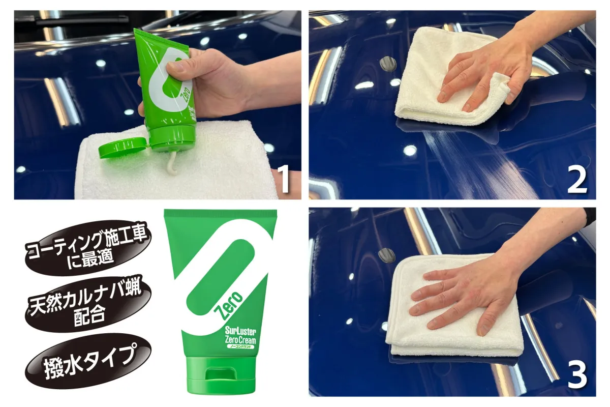 コーティング施工車の美しさを長持ちさせるために、「ゼロクリーム[ノーコンパウンド]」をぜひ試してみてください。愛車の輝きが、ますます増すことでしょう。