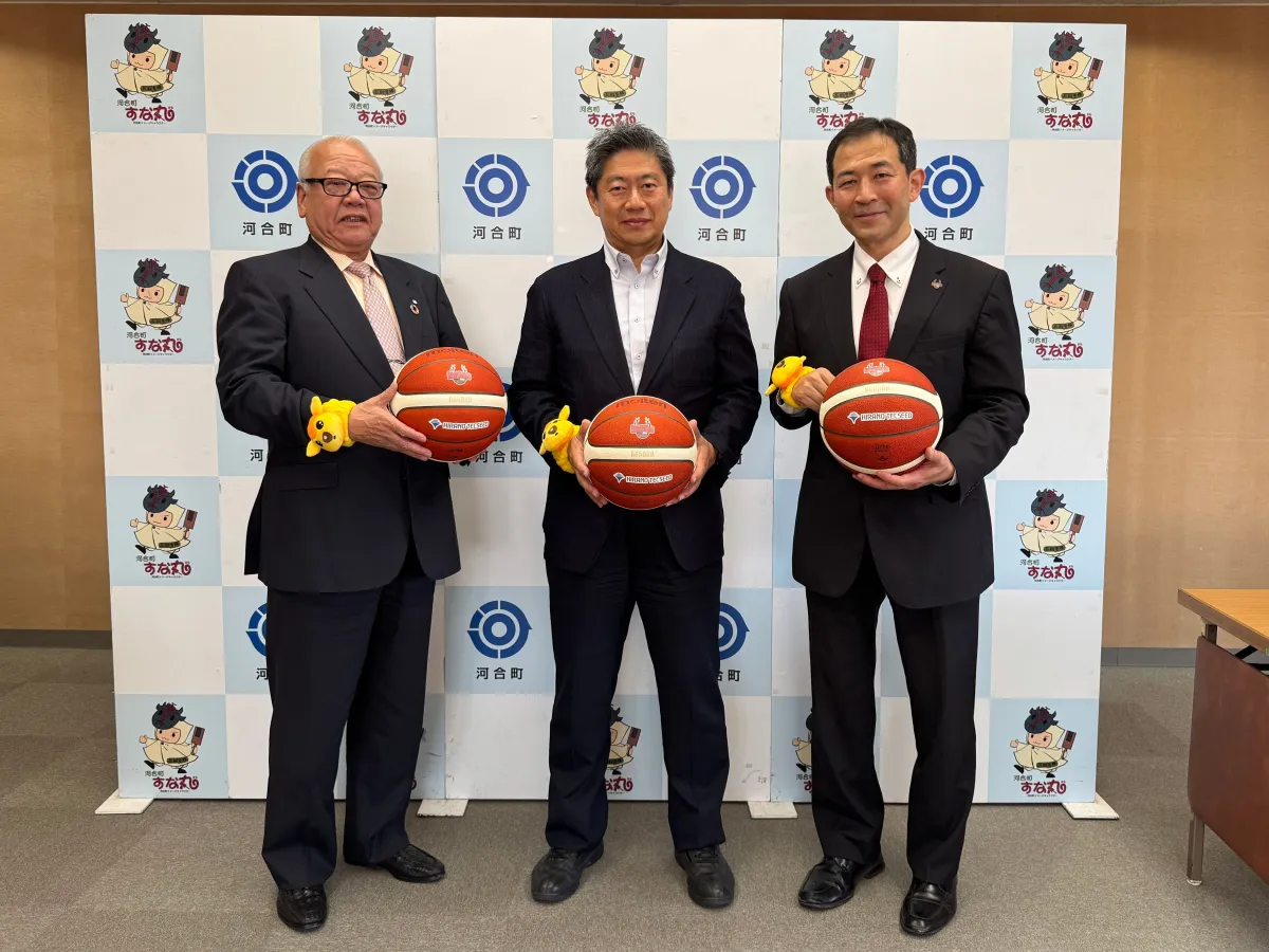 贈呈式では、河合町長の森川善之様も参加し、心温まるスピーチを行いました。「寄贈いただいたボールを通じて、子どもたちは、チームワークの大切さ、互いを尊重する心、そして困難に立ち向かう強さを学んでいくことでしょう。より多くの子どもたちがバスケットボールに興味を持ち、親しんでほしい」との言葉には、地域の教育に対する熱い思いが込められています。