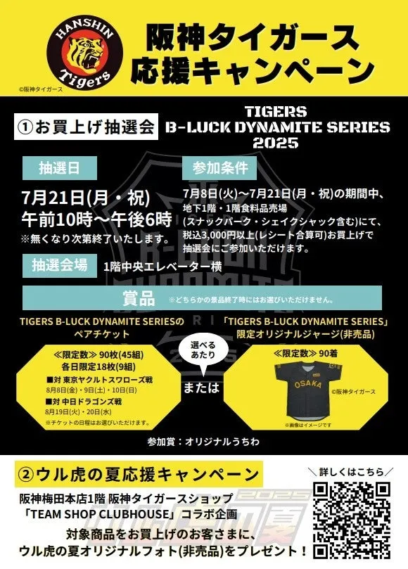 この夏、阪神梅田本店で阪神タイガースの応援に参加し、特別な商品を手に入れましょう!ぜひ、家族や友人と一緒に盛り上がってください!