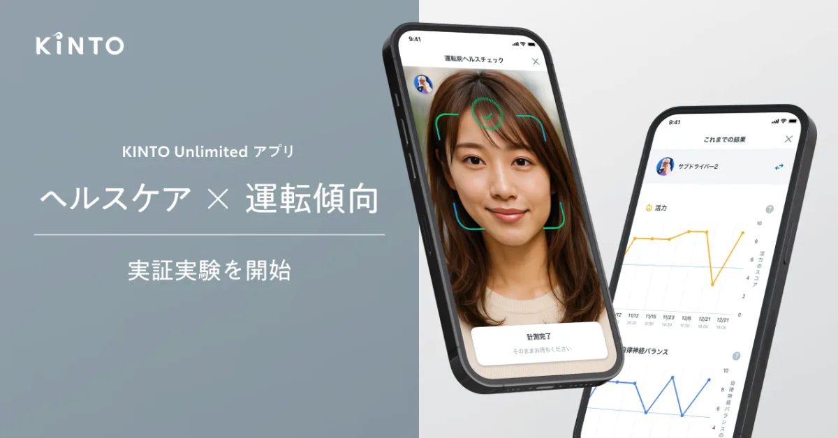 2026年4月6日から開始されるこのステップでは、「KINTO Unlimitedアプリ」を通じて「ヘルスケアチェック」が提供される。具体的には、スマートフォンのカメラで顔を撮影することにより、顔色や脈波から「活力度」の解析を行い、その結果を基にその日の健康状態に合った食事や運動のアドバイスがフィードバックされる。この機能は、ドライバー自身が日常的に健康状態を把握するためのものだ。
