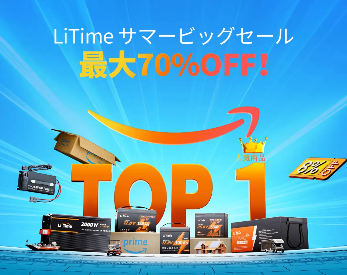 この夏、信頼性が高く多用途に使えるリン酸鉄リチウムイオンバッテリーをお得に手に入れる絶好のチャンスです。防災対策や車中泊を検討している方は、LiTimeのサマービッグセールをお見逃しなく!