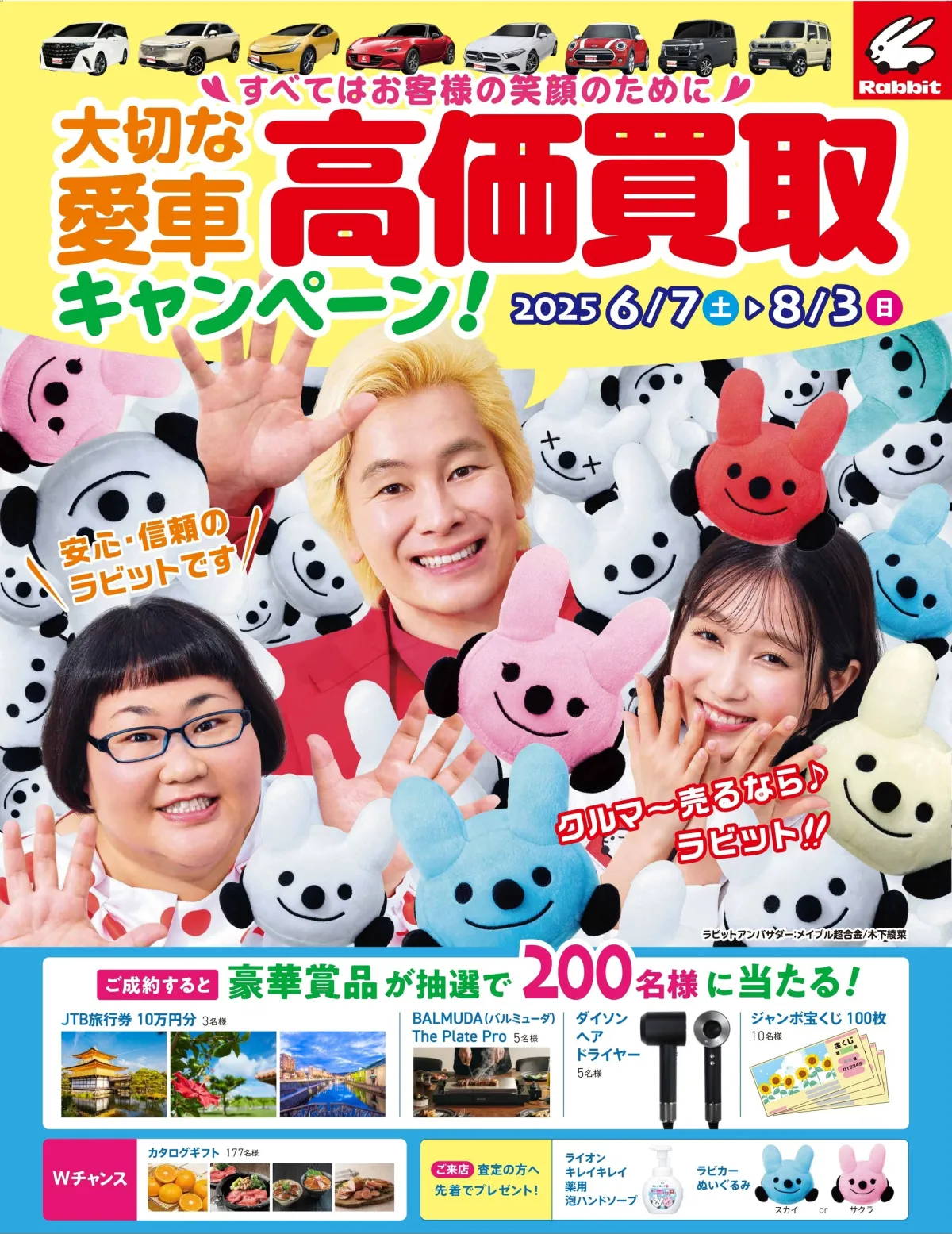 自動車の購入者や売却を考えている方に朗報です!株式会社ラビット・カーネットワークが運営する自動車買取・販売ブランド「ラビット」が、6月7日から8月3日までの期間限定で「大切な愛車高価買取キャンペーン」を展開しています。