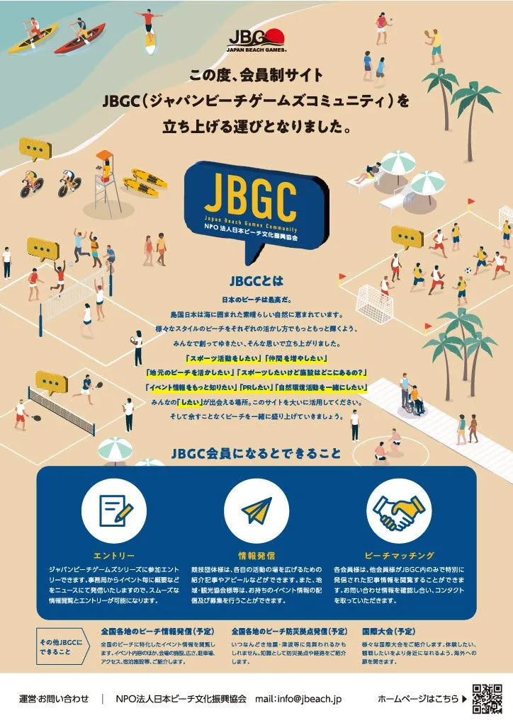 近年、私たちの生活の中で「ビーチ」の存在感が確実に増しています。海水浴シーズンの楽しみだけでなく、様々なビーチスポーツやイベントが盛況を博している中、この度、日本のビーチ文化を更に盛り上げるためのポータルサイト「ジャパンビーチゲームズコミュニティ(JBGC)」がオープンしました。