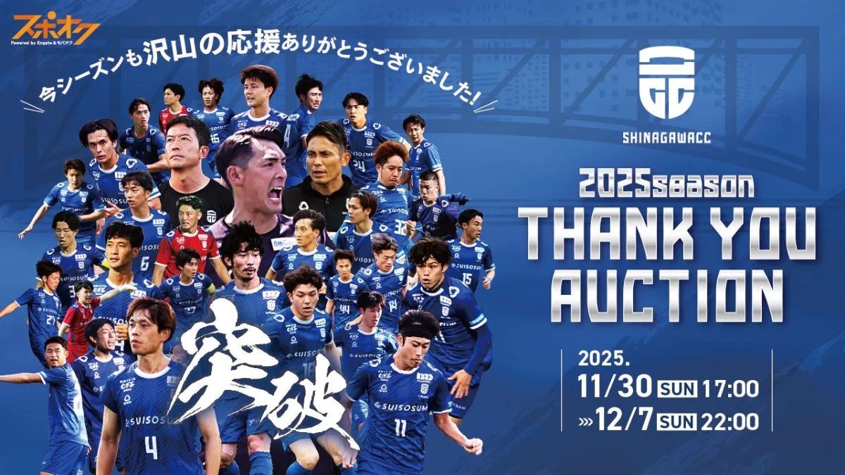 品川CCが、2025年11月30日(日)から12月7日(日)までの期間で『Thank you 2025 season オークション』を開催します。このオークションは、株式会社モバオクとエンゲート株式会社の提携を背景に、スポーツチーム公式のオークションサービス「スポオク」を通じて行われます。これにより、ファンやサポーターへの感謝の意を表しつつ、チーム関連の資金を集めることを目的としています。