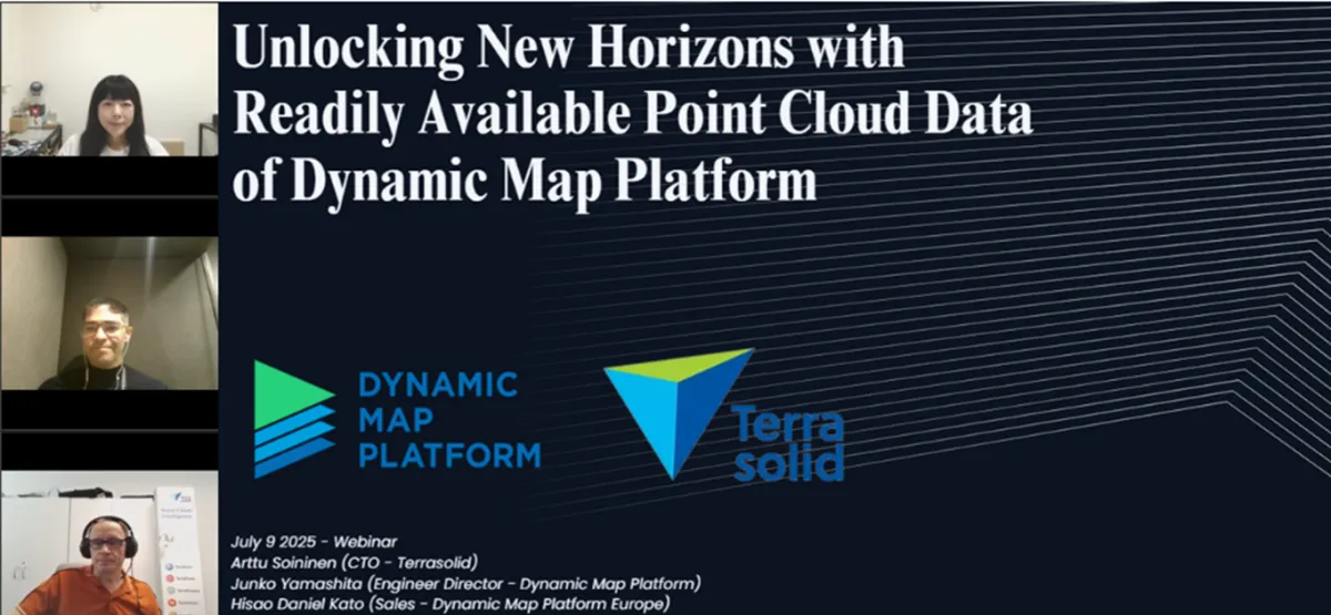 ダイナミックマッププラットフォーム(DMP)は、2025年4月にフィンランドのTerrasolid Ltd.と提携を結びました。これに伴い、7月9日に実施されたウェビナーでは、両社の協力によって生まれる新たな価値が多くの参加者に紹介されました。このウェビナーは、両社の技術を活用した高精度な3次元データの重要性を広く周知するための重要なステップとなることが期待されています。