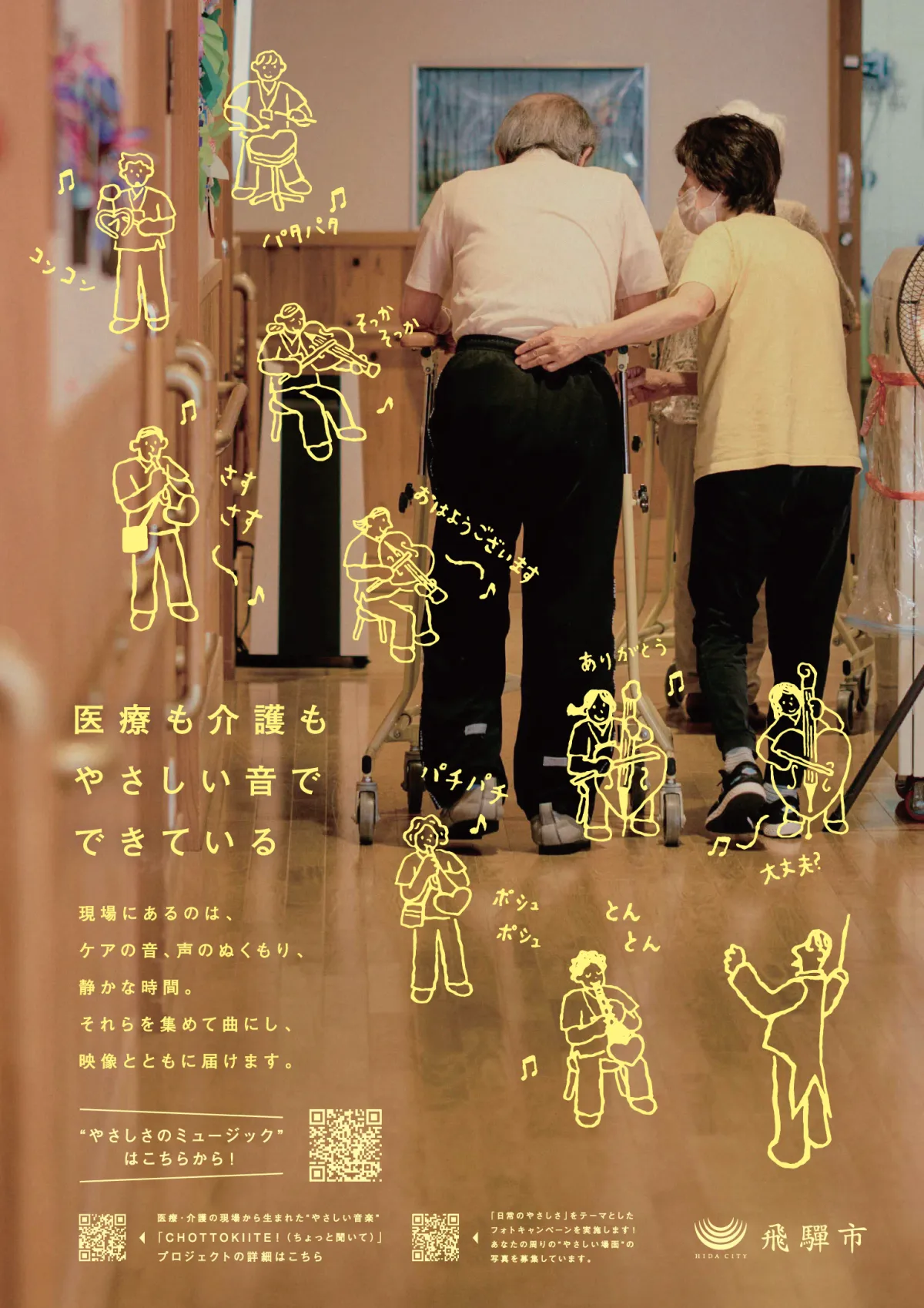 谷澤氏は、「ありがとう」や「キュッキュッ」という足音など、日常的な音を丁寧に集め、心地よいギターのメロディと融合させて、現場の温かさを表現しました。