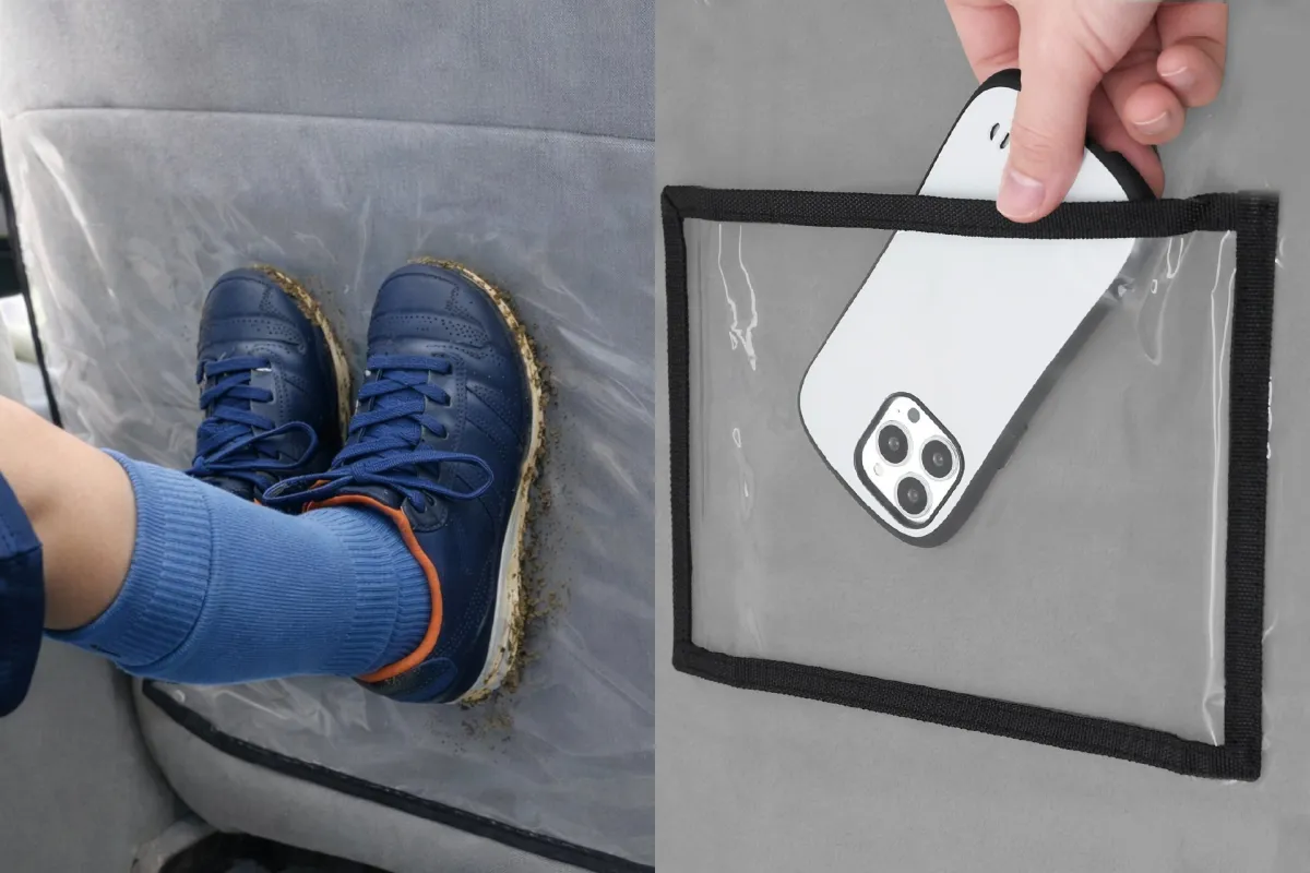 このカバーは、車のシート背面をPVC製でしっかりとガードし、水や泥のはねを防ぎます。特に外で遊んで帰ったお子様を乗せた際や、ロングトリップの途中での汚れ防止に最適です。取り付けもヘッドレストに掛けるだけという簡単さ。デザインはシンプルなクリア素材にブラックパイピングが施されており、どんな車内にも自然に馴染みます。また、ポケットが付いているため、さまざまな小物を収納することができ、サッと取り出せるのが便利です。さらに丸洗いもできるので、いつでも清潔に保てます。これでファミリーカーのストレスも軽減できそうです。