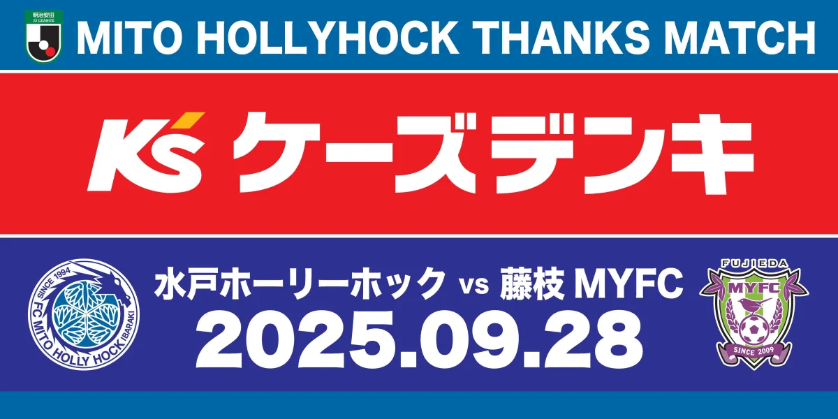 2025年9月28日(日)、水戸ホーリーホックは2025明治安田J2リーグ第31節で藤枝MYFCを迎え、特別なイベント「ケーズデンキサンクスマッチ」を開催します。これは、株式会社ケーズホールディングスのご支援のもとで行われるもので、サポーターの皆さんと一緒に楽しむ特別な機会となるでしょう。