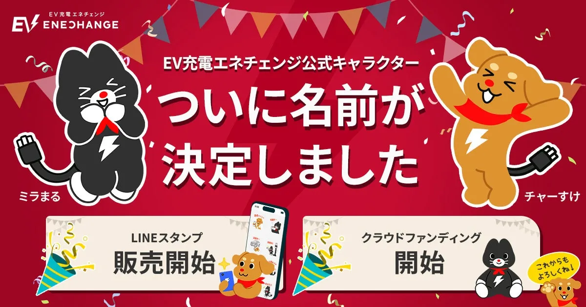 EV充電サービスを提供するミライズエネチェンジ株式会社が新しい公式キャラクター「チャーすけ」と「ミラまる」を発表しました。全国から2,127件の応募を経て決定したこのキャラクターたちは、EVと共に過ごす楽しさや魅力を伝える存在として期待されています。