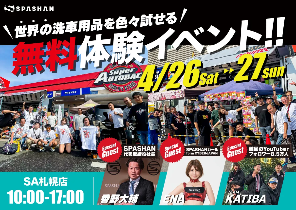 2025年4月26日と27日の二日間、北海道札幌市にあるスーパーオートバックス札幌店で、カーケアの無料体験イベントが開催されます。このイベントには、注目の特別ゲストが登場します。サイバージャパンダンサーズのENAさんや、人気YouTuberのKATIBAチームが参加し、愛車の洗車やコーティング方法を直接教えてくれます。