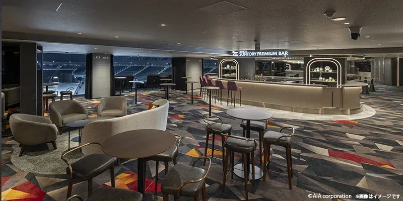 プレミアムラウンジ付シートは、特別なサービスを受けられるお席。専用エントランスからスムーズに入場でき、試合前やハーフタイムには、ゆったりとした空間の「d CARD LOUNGE」でリラックスした時間を過ごせます。このラウンジでは、ドリンクサービスもあり、専用カップで楽しむことができます。