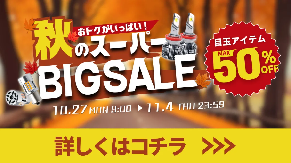 この秋のビッグセールは、秋のドライブシーズンや冬に向けた車の準備にも最適な機会です。セールは10月27日(月)9:00からスタートし、11月4日(火)23:59まで続きます。公式のAmazonストアであれば安全に購入できるため、ぜひこの機会をお見逃しなく!