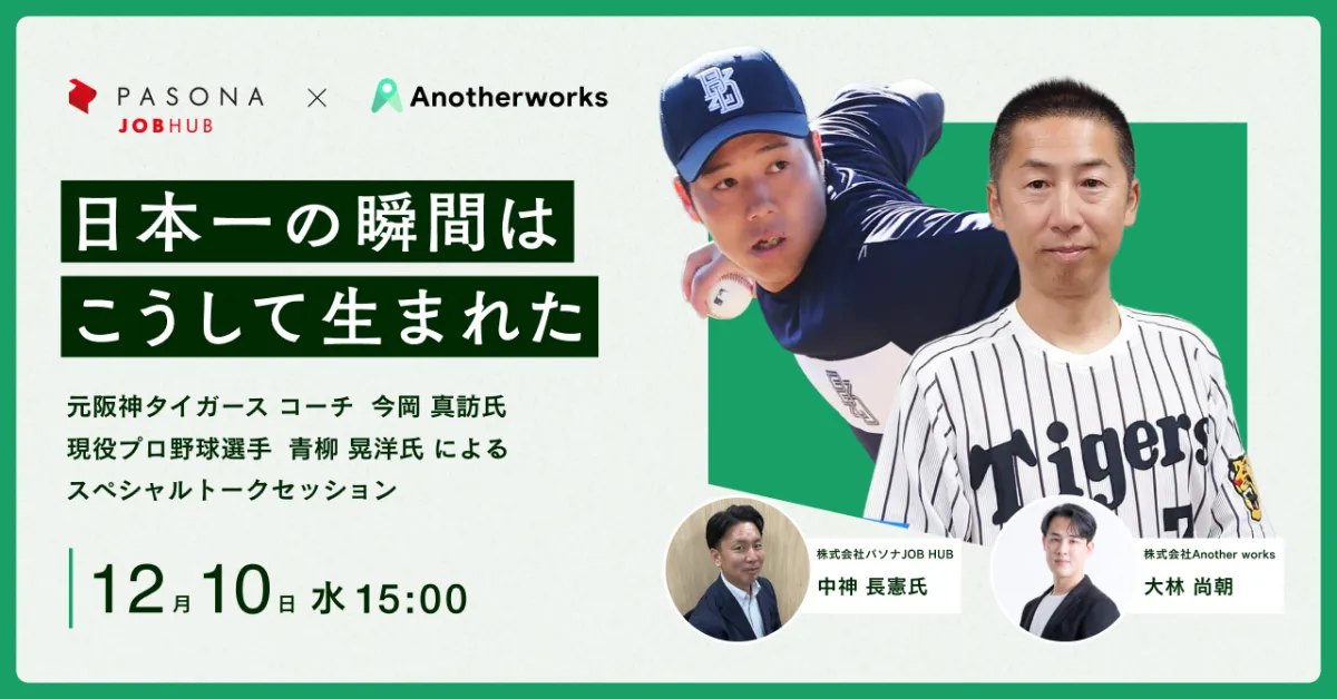 12月10日、大阪市で開催される特別なセミナー『日本一の立役者が語る、勝利の方程式』では、プロ野球界の成功者たちが経営やチーム作りに役立つ貴重な知見を共有します。このセミナーは、株式会社Another worksと株式会社パソナJOB HUBの共催により実現しました。
