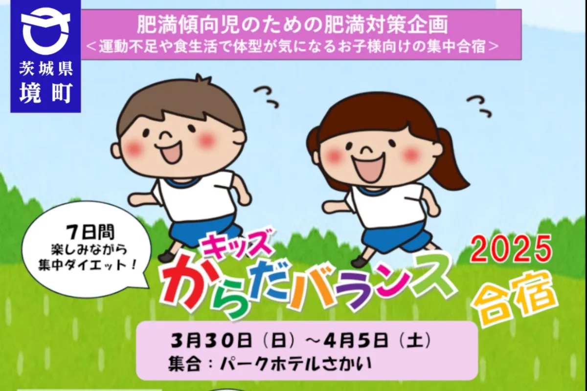 茨城県境町で2025年春に開催された「キッズからだバランス合宿2025」は、肥満傾向にある小学3年生から6年生の子供たちを対象とした、健康的な生活習慣を促進するための特別な合宿です。このユニークな取り組みは、春休み期間中の2025年3月30日から4月5日までの6泊7日で実施されました。
