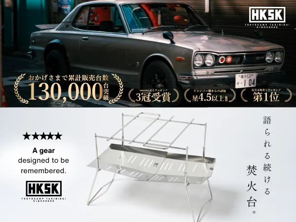 PVの中では、ハコスカとの共演を果たした焚火台がその存在感を放ちます。名車の直線的で無骨な美しさと、実用性に徹した焚火台。これらの映像は、ただのギアを越えて、「語れるギア」とは何かを問いかけます。