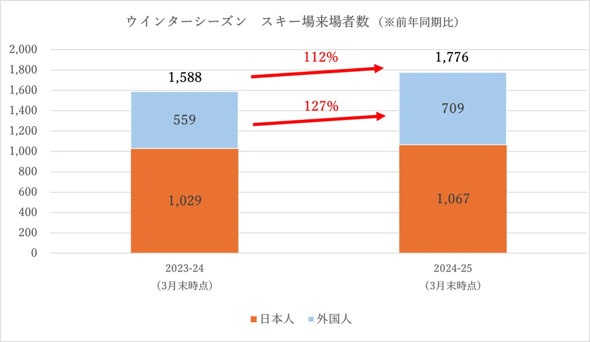 長野県に位置する白馬バレーは、2024-25ウインターシーズンの来場者数が過去最高を記録し、スキー愛好者の注目を集めています。3月末時点での総来場者数は177.6万人、前年同期比112%という素晴らしい数字が示す通り、多くの家族や外国から訪れた観光客がこの美しいスキーリゾートを楽しんでいます。特にインバウンド観光客は前年比127%に達する70.9万人となりました。