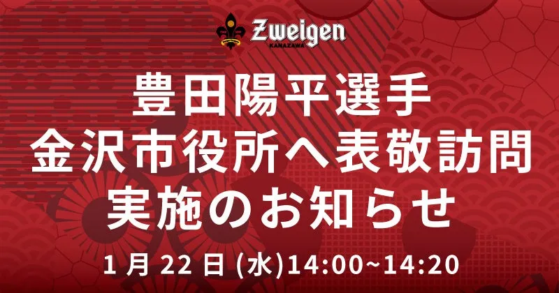 2025年1月22日(水)、元日本代表スターであり、現在はツエーゲン金沢に所属する豊田陽平選手が金沢市役所を表敬訪問します。この訪問には、同チームの代表取締役事業統括である端陽造氏も同行します。この機会は、豊田選手が出身地である石川県への愛情を新たに示す場となるでしょう。