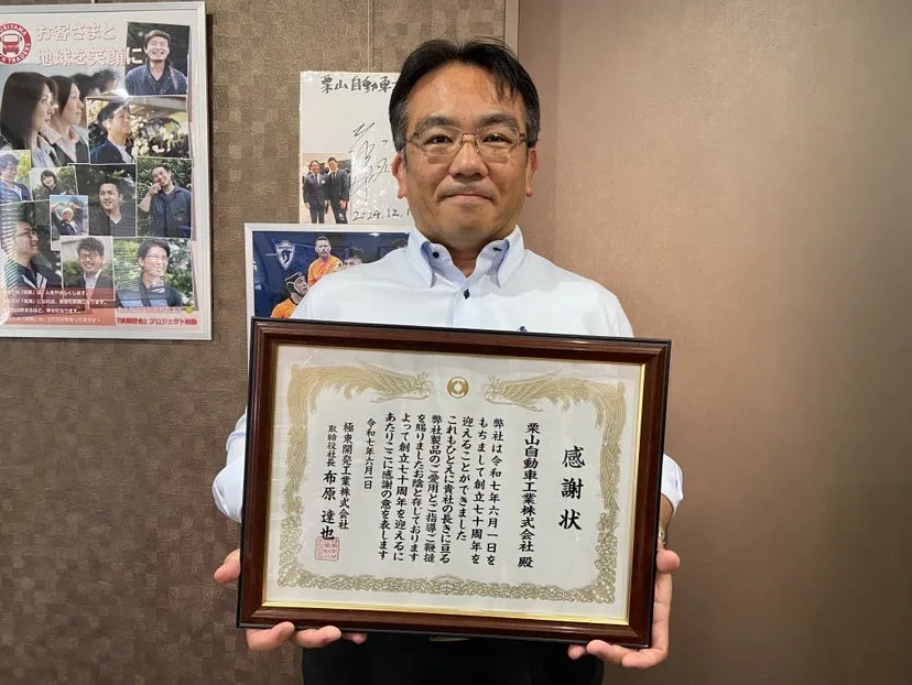 東京、千葉、神奈川に拠点を持つ栗山自動車工業株式会社が、極東開発工業株式会社の創立70周年を祝し、感謝状を授与されるという名誉ある出来事がありました。栗山自動車工業はトラックの中古車販売や買取、レンタル、そしてパーツ販売に力を入れ、環境に優しい車両の提供とリサイクル促進を通じて持続可能な社会を目指しています。