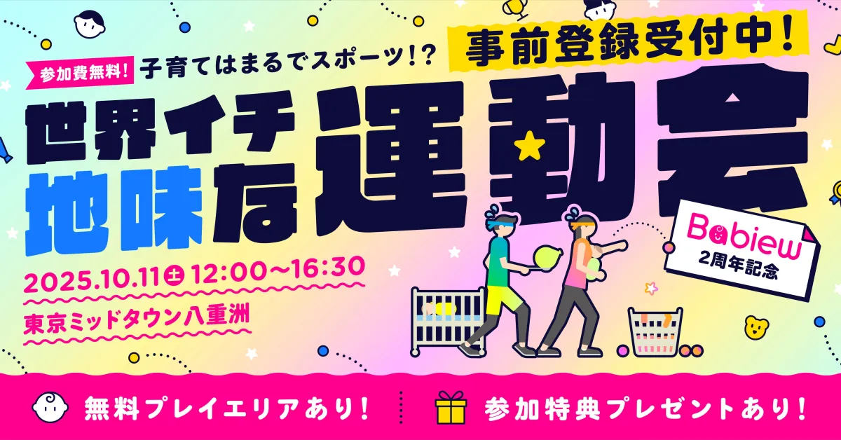 育児は地味なことが多いですが、それにこそ驚くべきスキルが詰まっています。この「世界イチ地味な運動会 2025」では、そんな日常の育児スキルを競い合い、楽しむイベントが来たる2025年10月11日(土)に東京ミッドタウン八重洲で開催されます。これを主催するのは、ベビーグッズの口コミサイト「Babiew(べビュー)」を運営するBEFFY株式会社。