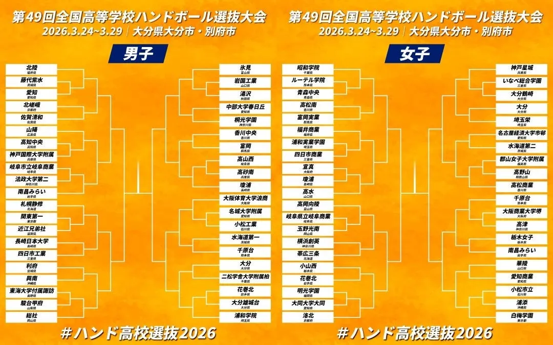 第49回全国高等学校ハンドボール選抜大会の組み合わせ結果