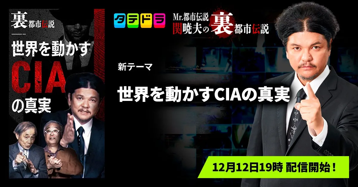 株式会社DONUTSが運営する縦型ショートドラマアプリ「タテドラ」において、新作『Mr.都市伝説 関暁夫の裏都市伝説』が12月12日(金)に配信開始されます。この新作は「世界を動かすCIAの真実」というテーマのもと、全15話で構成され、Mr.都市伝説 関暁夫さんがその独自の視点で語る都市伝説を探究します。