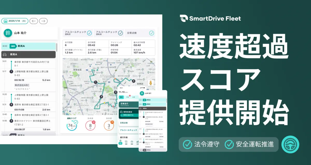 さらに、今後のアップデートにより、速度の超過状況が「安全運転スコア」に反映される予定です。この機能は、ドライバーごとの継続的な運転評価に役立ち、より詳細な分析が可能になります。これにより、企業は交通安全対策やコンプライアンスの強化に寄与するでしょう。