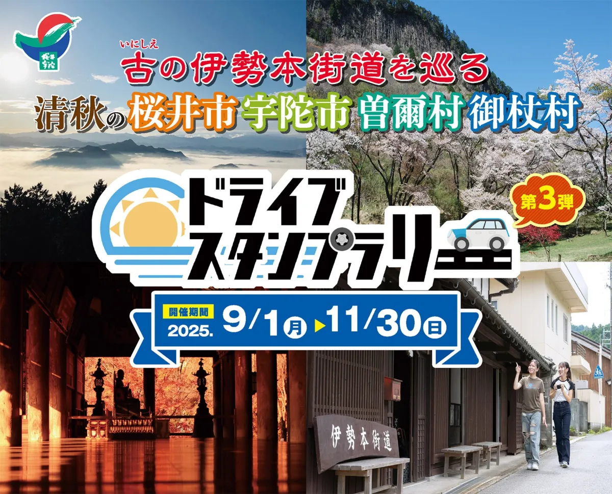 今年も奈良県の観光振興に寄与する「古(いにしえ)の伊勢本街道を巡る清秋の桜井市・宇陀市・曽爾村・御杖村 ドライブスタンプラリー」が始まりました。例年、多くの参加者が集まるこのイベントは、地域を探索しながら特産品を獲得できる絶好のチャンスです。