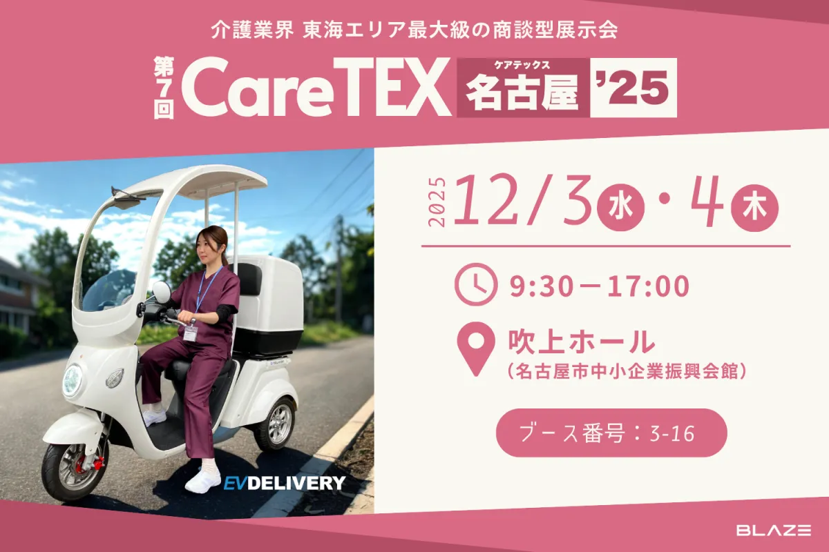 業界の革新が進む中、株式会社ブレイズが2025年12月3日・4日に名古屋で開催される『第7回 CareTEX名古屋’25』に3輪屋根付き電動スクーター『EVデリバリー』を出展することが決定しました。この展示会では介護業界に特化したさまざまな商品やサービスが勢揃いするだけでなく、ブレイズの先進的な電動モビリティもその技術と効率をアピールします。