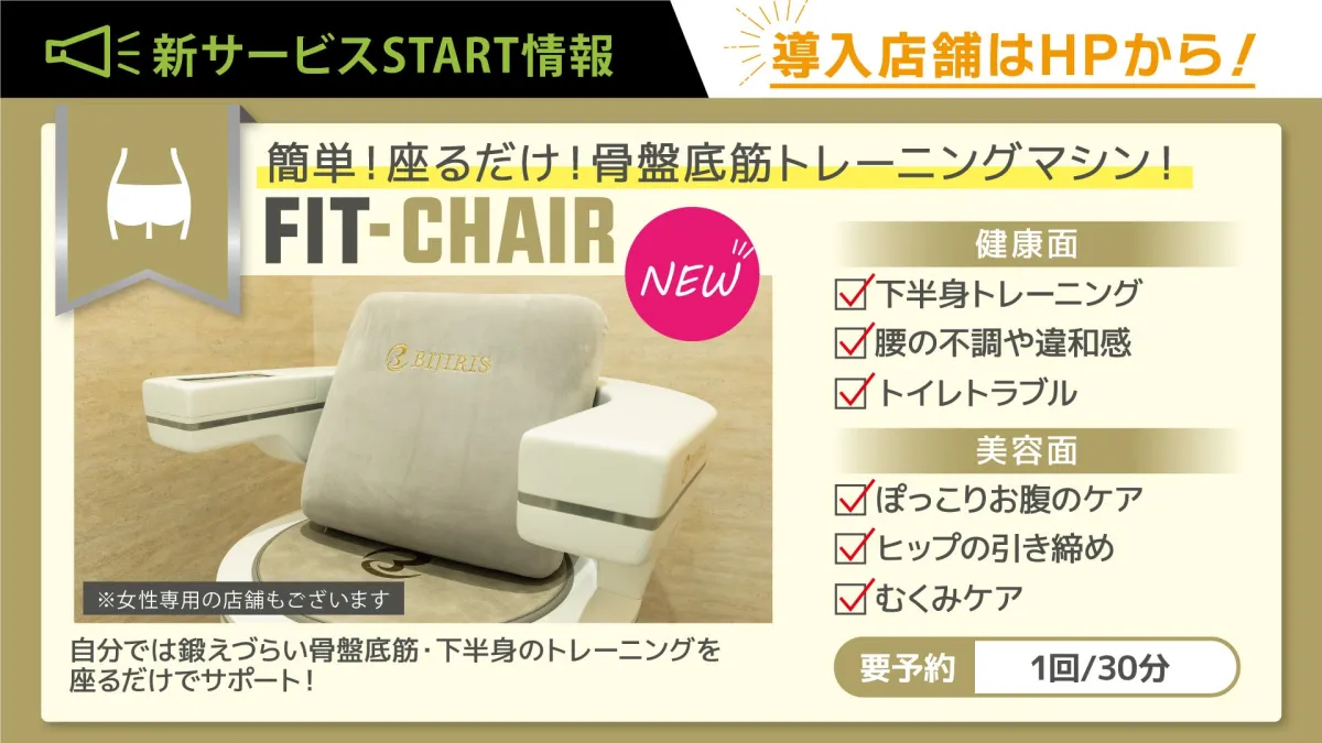 利用方法は非常に簡単です。「FIT-CHAIR」に座ってスイッチを押すだけ。各店舗は予約制で、1枠30分の時間設定となっています。無理のない強さで利用するのが推奨されていますので、初心者でも安心して挑戦できます。