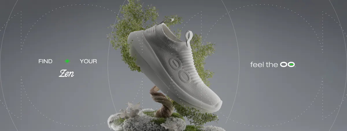 OOmy Zenのデザインは、数多くの専門知識を結集した結果、非常にシンプルながらも革新的。装飾を排し、シームレスニットとOOfoam™テクノロジーの完璧なコンビネーションによって、まるで靴下のようなフィット感を実現しています。このシューズは、日常生活で感じるストレスを軽減し、一歩ごとに解放感を提供します。