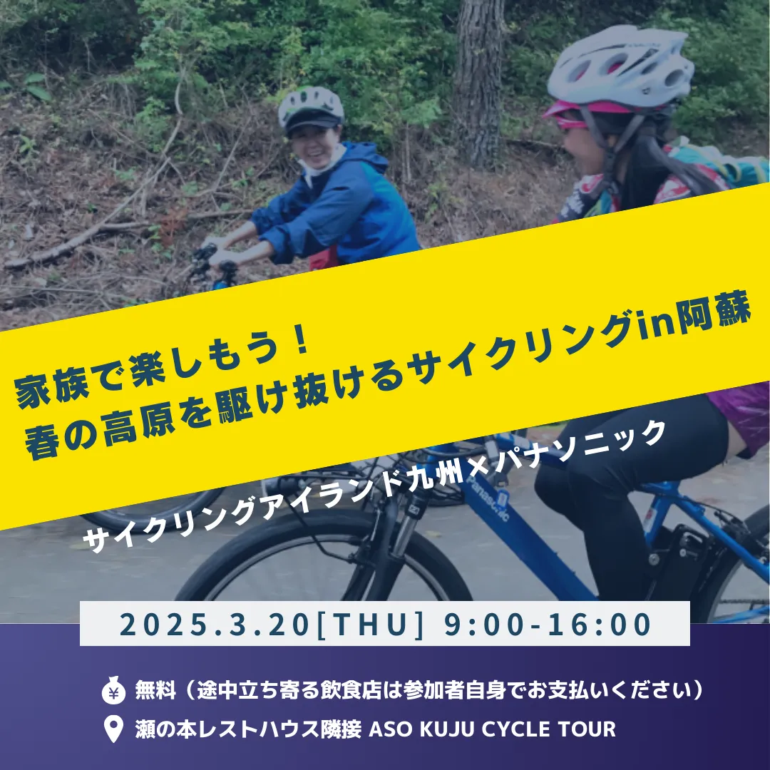 いよいよ2025年春、熊本県阿蘇郡南小国町で特別なイベントが開催されます。「サイクリングアイランド九州×パナソニック×ASO KUJU CYCLE TOUR」によるこのファンミーティングは、家族全員が参加できるE-bikeツアーです。山々に囲まれた阿蘇くじゅうで、電動アシスト自転車を駆使して親子で自然を満喫しましょう!