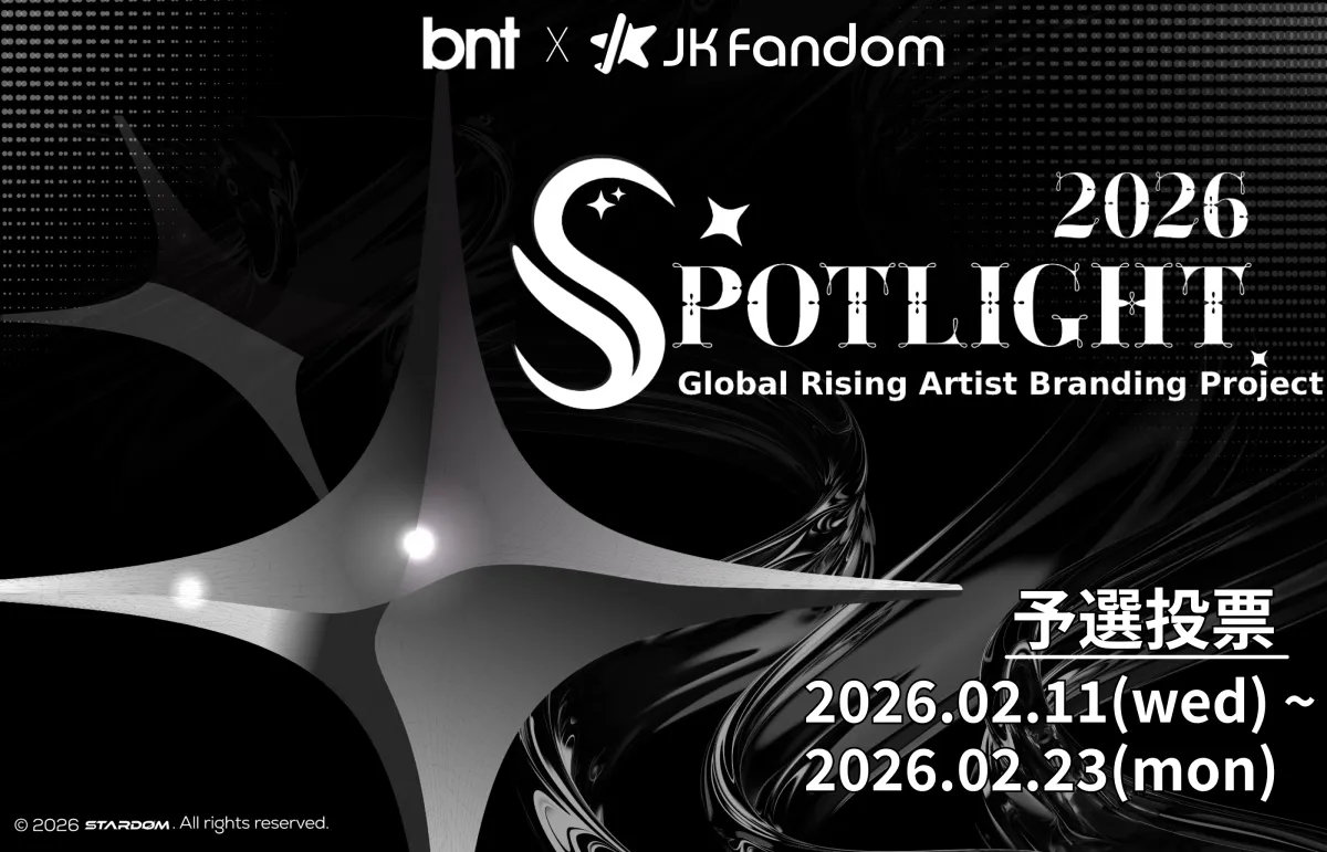 ファンの皆さん、お待たせしました。2026年2月11日から、グローバル推し活応援プラットフォーム「JK Fandom」が、韓国の最新トレンドを発信する「bntニュース」と連携して、注目のアーティストを輝かせるプロジェクト「BNT SPOTLIGHT」投票を開始します。このプロジェクトは、世界中のファンが参加できるオンライン投票企画で、ライジングアーティストのブランディングを目指します。