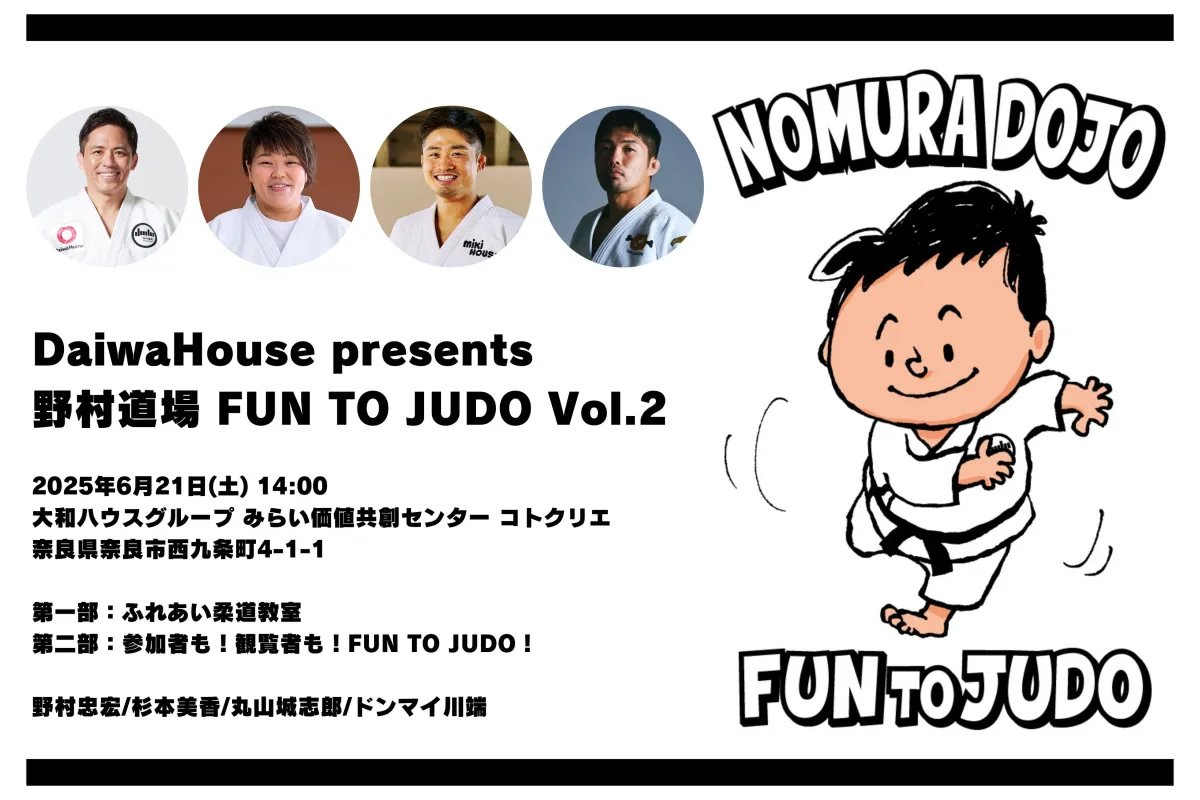 2025年6月21日、奈良市で「Daiwa House presents 野村道場 FUN TO JUDO Vol.2」が開催されます。このイベントは、オリンピック三連覇を成し遂げた柔道家・野村忠宏のプロデュースによるもので、柔道をもっと自由に、もっと楽しく体験できることを目的としています。特に、年齢や経験に関係なく、誰でも参加可能なふれあい型のイベントです。