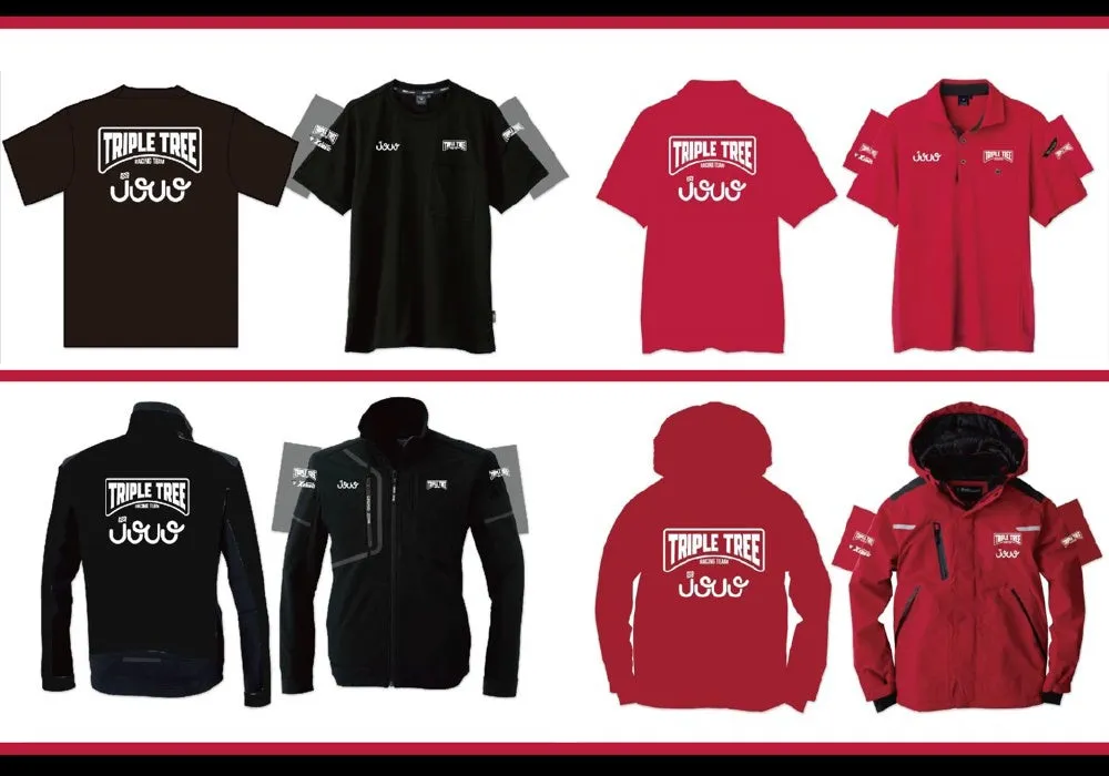新たにリリースされたのは、Jujuモデルの「HAZAMA ANDO Triple Tree Racing」のスタッフが着用するチームユニフォームです。これらのユニフォームは、Jujuのロゴが特別に施されたスペシャルモデルとして完全受注生産で販売されます。以下の商品がラインアップされています: