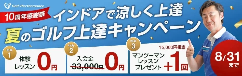 現在、ゴルフパフォーマンスでは、特別な「夏のゴルフ上達キャンペーン」が開催中です。このキャンペーンでは、8月中に無料のマンツーマンレッスン1回(通常15,000円相当)がプレゼントされる他、入会金33,000円が無料になる特典もついています。さらに「無料体験レッスン」の提供により、初めての方にも安心して受講いただけます。これを機に、多くのゴルファーが一歩を踏み出しています。